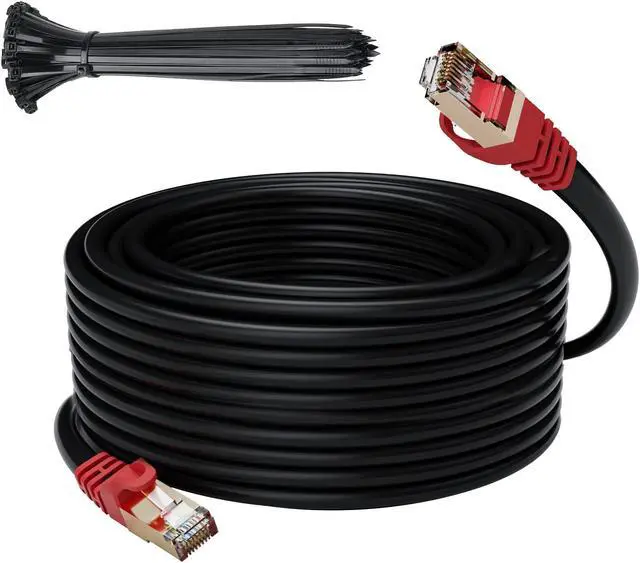 [(10 Gbps & 600MHz)] Adoreen Cat7 Outdoor Network Patch Cable supports 10Gbps data transmission , bandwidth up to 600MHz. Compliant with ANSI/TIA/EIA-568-B. 2-10, 10BASE-T, 100BASE-TX (Fast Ethernet), 1000BASE-T/1000BASE-TX (Gigabit Ethernet) and 10GBASE-T(10-Gigabit Ethernet) at high speeds, also compatible with Cat5/Cat5e/Cat6/Cat6a internet cable.