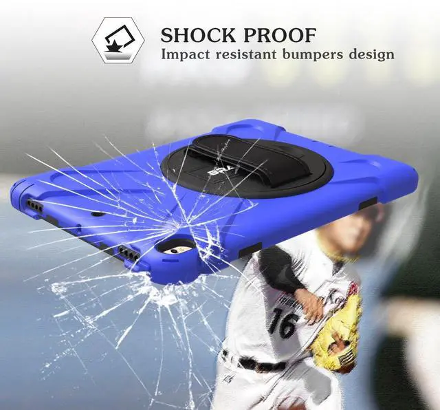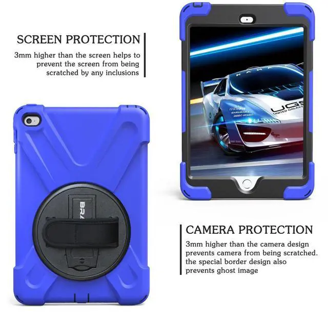 BRAECN iPad Mini4 & 5 Shockpoof Case, Three Layer Drop Protection Rugged Heavy Duty Case with 360 Degree Swivel Stand/Hand Strap/Shoulder Strap for iPad Mini5 (Blue)