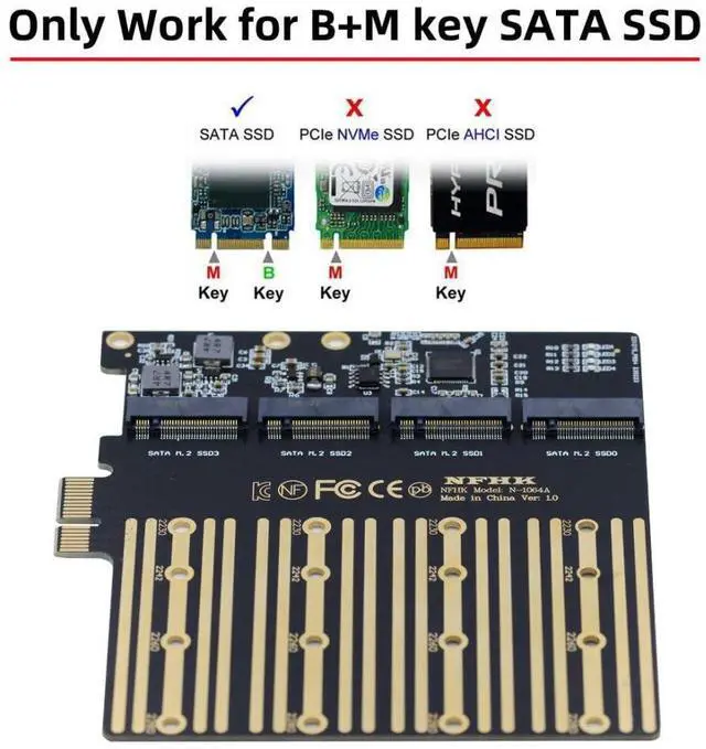 It has PCI-E X1 interfaces, which can be connected to four SATA SSDs, and supports desktop motherboard PCI-E port.
