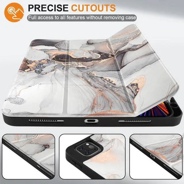 DONGKE Case for iPad Pro 12.9 inch 6th Generation 2022, Built-in Pencil Holder + Trifold Stand + Auto Wake/Sleep + Protective Cover for iPad Pro 12.9 5th/4th/3rd Gen - Grey Marble