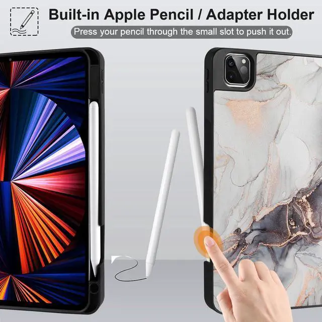 • [(For Apple Pencil Charging)] Built-in Pencil holder & adapter slot, grab your Pencil & adapter effortlessly whenever you want, easily to carry your pencil with your device. (Case only, other accessories not included!)