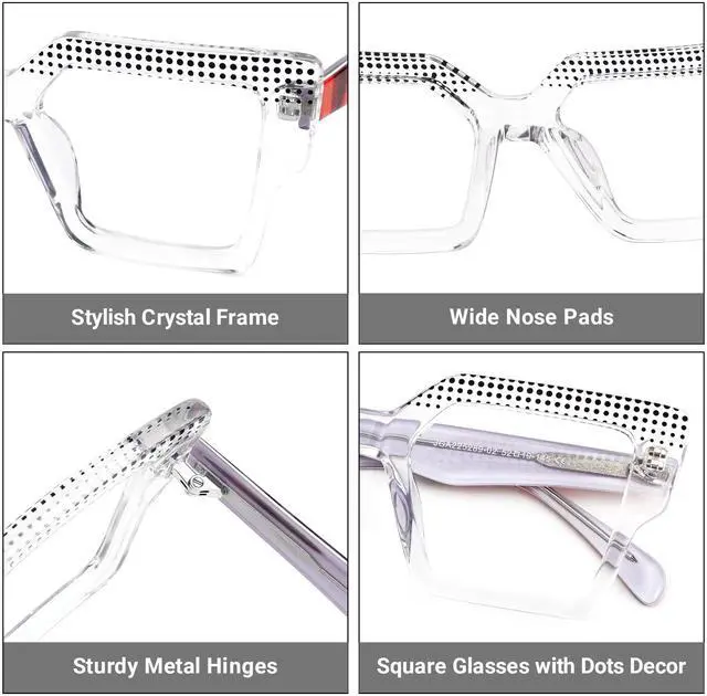 Zeelool Square Glasses Acetate Eyewear for Women Blue Light Blocking Glasses Anti Eyestrain Glasses Prisca ZJGA225289-02 Crystal