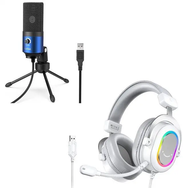 FIFINE Condenser USB Microphone for Recording, Gaming Headset Bundle with Volume Control, RGB, PC Computer Mic Set Compatible with Desktop/Laptop, Windows/Mac for Streaming Podcast Vocal (K669L+H6W)