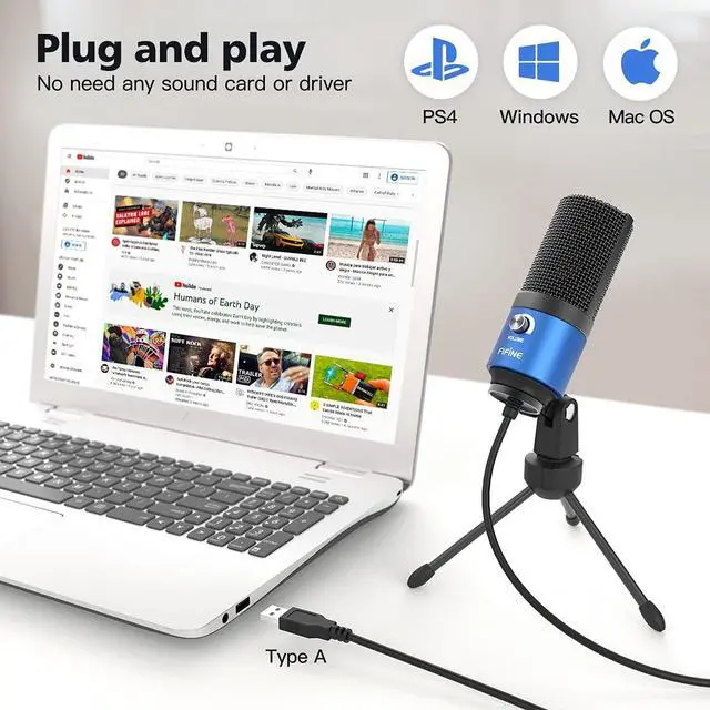 [All Metal Construction] Made out of solid, quality materials, the microphone for computer recording is built to last. It also finished in a very nice matte blue coating which gives a real premium look and feel to the K669L. The 6ft permanently attached USB cable is long enough to connect the usb audio mic to your pc.