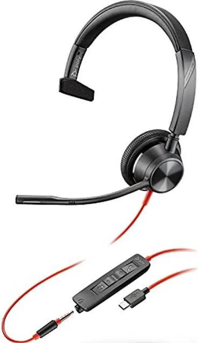 Plantronics - Blackwire 3315 Wired, Single Ear (Mono) USB-A Headset with Boom Mic (Poly) - Connect to PC/Mac via USB-A or mobile/tablet via 3.5 mm connector - Works with Teams (Certified), Zoom & more