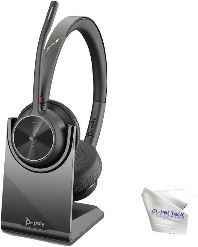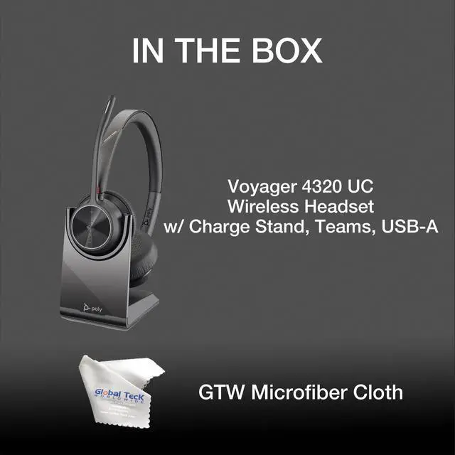 GLOBAL TECK BUNDLE: Poly Plantronics Voyager 4320 UC Wireless Bluetooth Duo Headset (USB-A) Office Wireless Headset for MS Teams With Charge Stand and Includes a Global Teck Microfiber Cloth