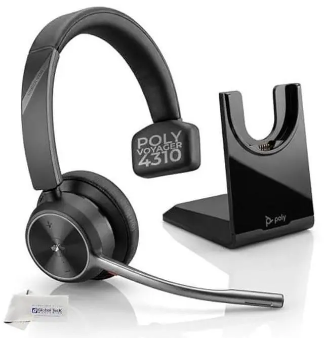 • GLOBAL TECK BUNDLE: Poly Voyager 4310 UC Wireless Bluetooth Mono Headset (USB-A) with Charging Headphone Stand and Global Teck Microfiber Cloth