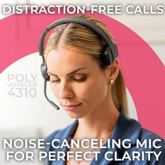 • CONNECTIVITY: Poly Voyager 4310 UC wireless noise cancelling headphones with microphone is compatible with desk phones, PCs, and Bluetooth devices, ensuring seamless connectivity across multiple platforms.