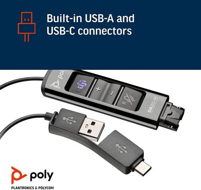 Hybrid working? No problem. Poly DA85M digital adapters keep call center employees sounding clear at home or in the office with easy USB-A or USB-C connections. Full Microsoft Teams integration gives you access to everything Teams has to offer. They even adjust audio to each specific headset, offering pro-grade call quality.