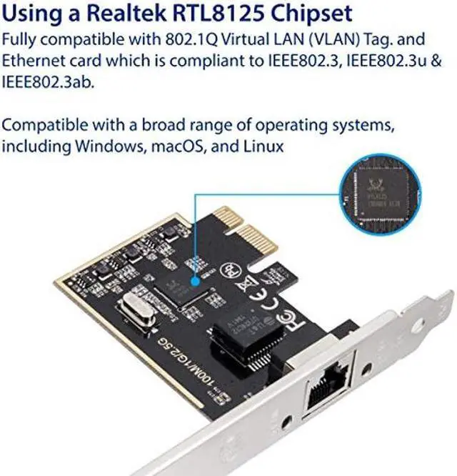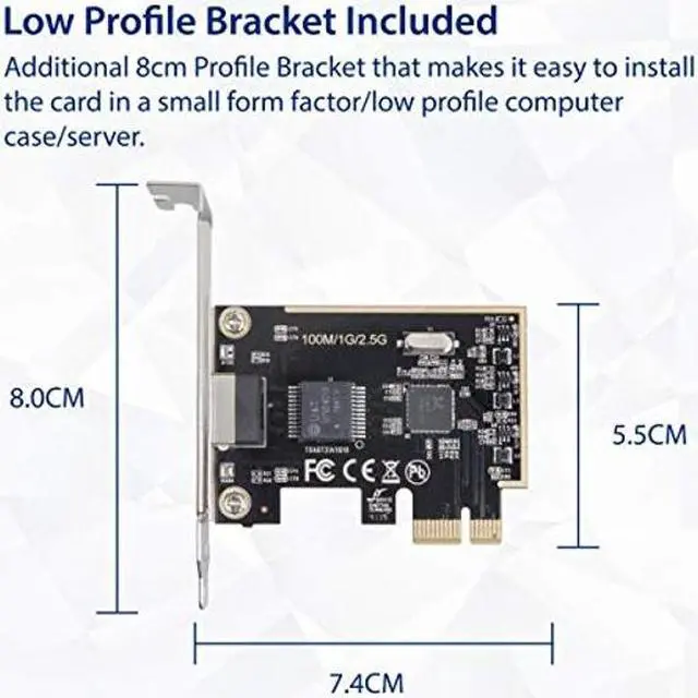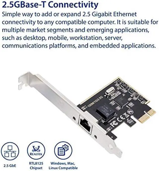 Provides 2.5 Gigabit Ethernet connectivity to Mac Pro towers and Windows PCs. Simple way to add or expand 2.5 Gigabit Ethernet connectivity to any compatible computer. It is suitable for multiple market segments and emerging applications, such as desktop, mobile, workstation, server, communications platforms, and embedded applications.
