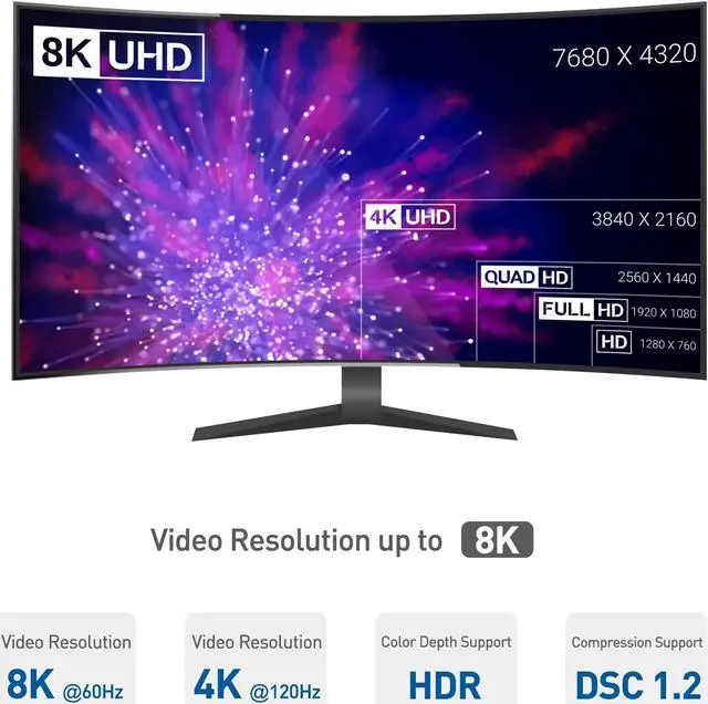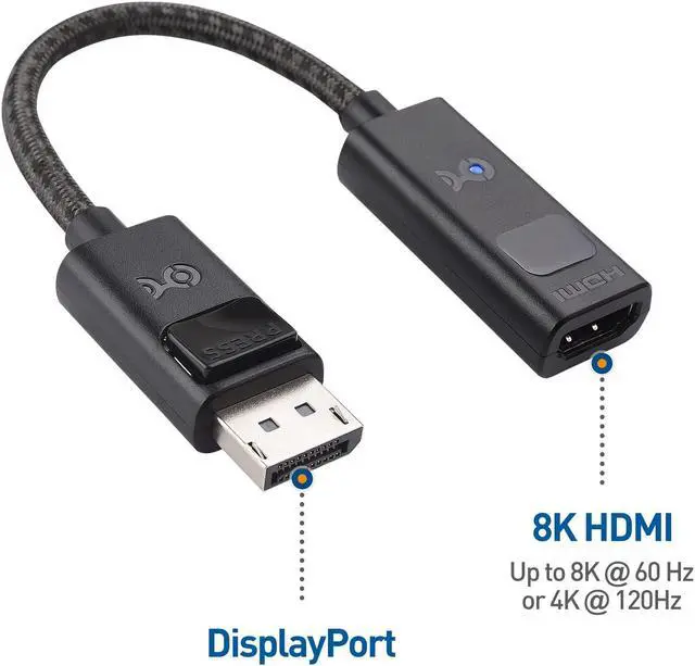 DisplayPort 1.4 to HDMI adapter supports the latest HDMI 2.1 technologies, including 4K 120Hz and 8K 60Hz video; Leverage the latest HDMI tech with this DisplayPort to HDMI 2.1 adapter