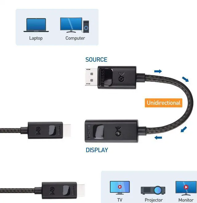 Hear every detail with surround sound support with this DP to HDMI adapter; See every color with HDR for perfectly vibrant color with this DP to HDMI adapter cable; Supports a 4K 120Hz television at an ultra-high resolution and refresh rate