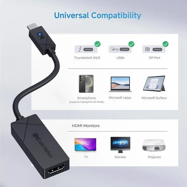 Cable Matters [Designed for Microsoft Surface] USB C to HDMI 2.1 Adapter, Supports 4K@240hz, 8K@60hz, HDR, Compatible with Surface Pro, Surface Laptop, Surface Book with USB-C or Thunderbolt 4 Port