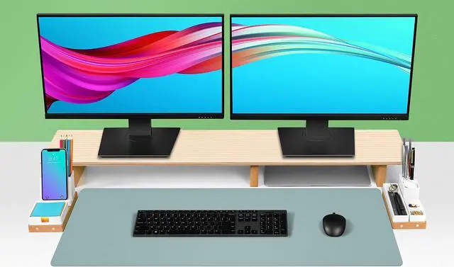 High Quality: This desktop Stand is made of 12-ply superior composite hardwood plywood together with premium cork, which is robust, durable, non-sliop and won't hurt the desktop. And its simple structure is easy to install.