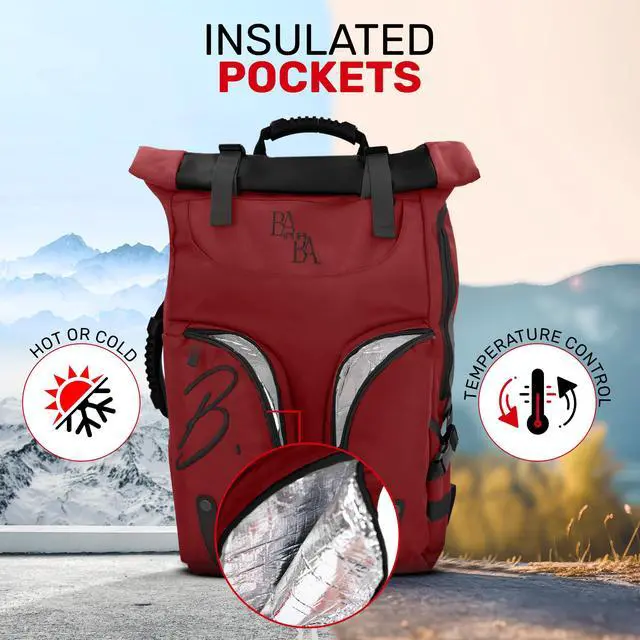 BABA Motoni Laptop Backpack - Limited Edition Waterproof Designer Office and College Backpacks for Women and Men with Multiple Pockets, Fits 17-Inch Laptop, 37 Liters, Red