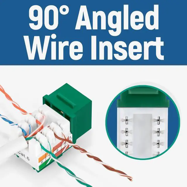 Bundle - 3 Items: easyJACK - 90deg Angled Speed Termination Tool + Replacement Head + 90deg Angled Cat6 Keystone Jacks in Green (50 Pack)