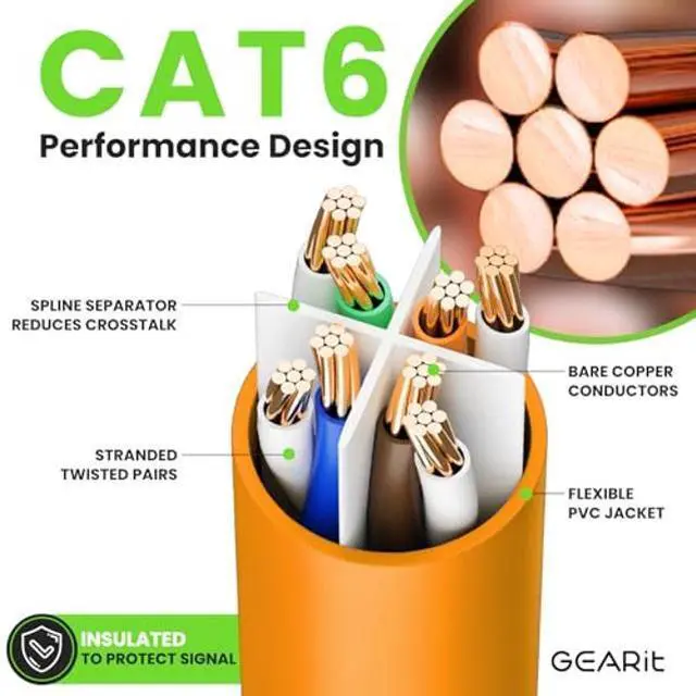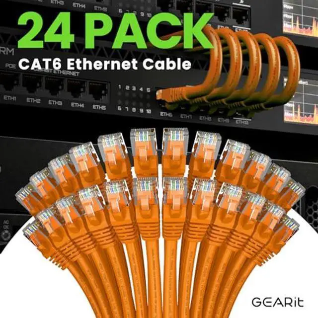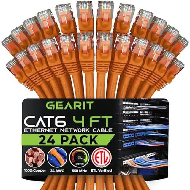 GEARit Cat 6 Ethernet Cable (24-Pack 4 Feet) Cat6 Network Patch, 10Gbps, RJ45, Snagless Cord, Gold-Plated Connectors, Internet for PC, TV, Tablet, Router, Printer, Servers, IT Data Center - Orange