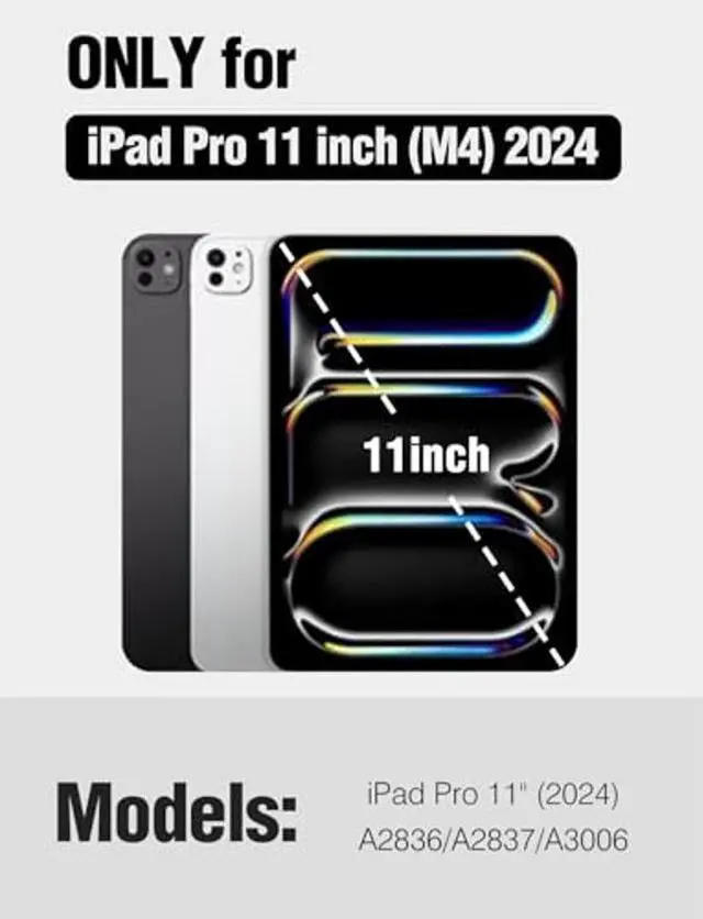[(COMPATIBILITY)] Only for iPad Pro 11 inch (M4, 2024), Model: A2836,A2837. Note: NOT included screen protector and Apple Pencil.