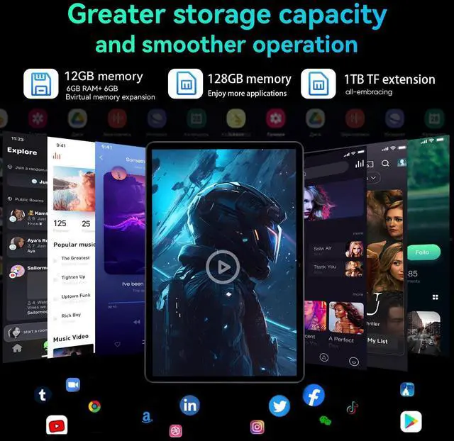 LARGE STORAGE SPACE: The tablet features 12GB RAM (6GB + 6GB), 128GB ROM storage and up to 1TB of expandable storage. This allows you to quickly save many of your everyday files, transfer data and load software. You can download and store your favorite books, songs, photos, movies, games, and anything you