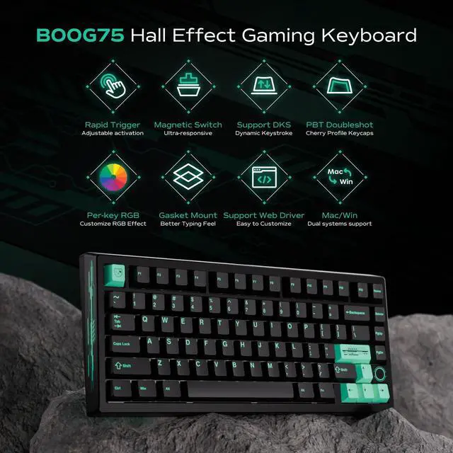 Exquisite Appearance Design: The BOOG75 Gaming Keyboard features a unique and stylish look, seamlessly blending modern aesthetics with exceptional functionality. Its minimalist lines provide a cutting-edge technological feel that gamers will appreciate