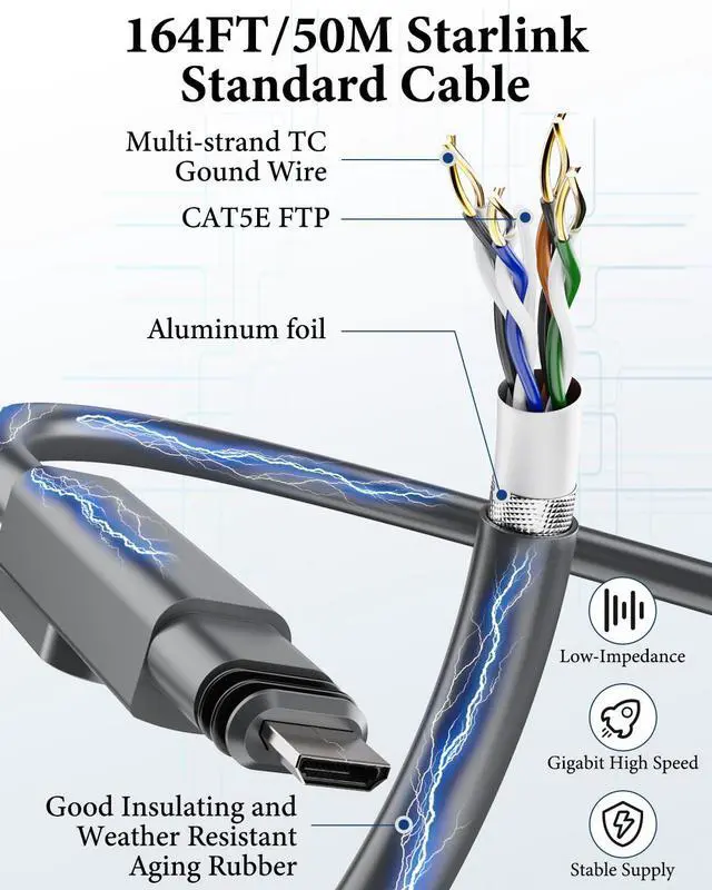 LuxiSync Starlink Gen 2 Cable, 164FT/50M Starlink Extension Cable for Starlink Actuated Gen 2, Starlink Cable Extension for Starlink Internet Kit Satellite -Waterproof
