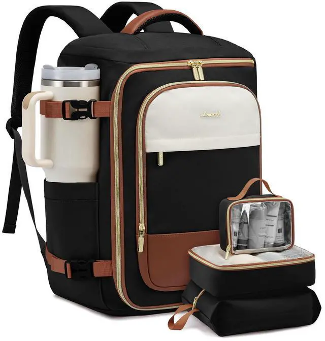 Plenty of Storage & Built-In Security:With 4 compartments and multiple pockets, this carry-on backpack for women and men is spacious enough for a 3-5 day trip. The front compartment offers quick access for items like your phone and headphones. Side pocket fit a 30 to 50-ounce Stanley tumbler. The back has a padded compartment for a 17-inch laptop and a hidden ant