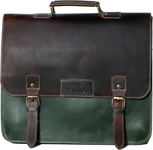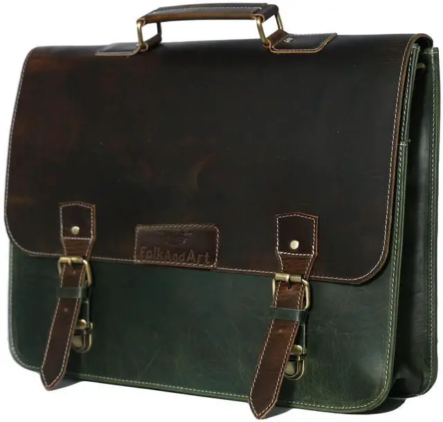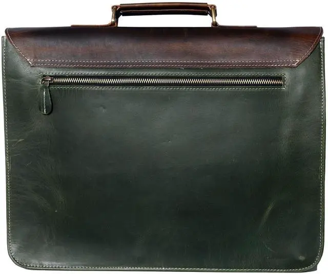 • Crafted from Genuine Full-Grain Leather: Made from 100% genuine full-grain leather, this handmade bag boasts a two-tone brown and green design, perfect for professionals who appreciate vintage style and durability. Over time, the leather develops a stunning patina, adding character to your daily accessory.