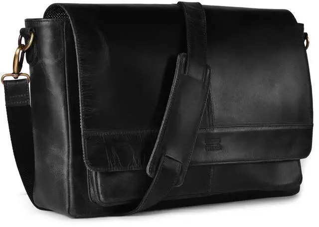 LEATHER VILLAGE Vintage Leather Handmade Laptop Messenger Bag- 15.5 Inch Satchel-Black Shoulder Bag for Men & Women, Crossbody Work Bag for Office, Travel & Daily Use