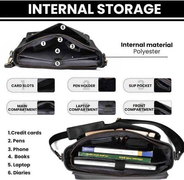 Premium Handcrafted Leather Messenger Bag: Crafted from the finest full-grain leather, these bags exude unmatched luxury and durability. Each bag is meticulously handmade and lined with sturdy polyester, ensuring it withstands daily wear and tear. Skilled craftsmen pour their expertise into every stitch, creating timeless accessories that reflect personality and depth.