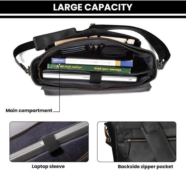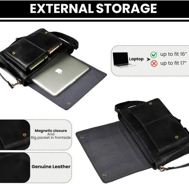 Efficient Organization: This bag measures 15.5" width x 10" height x 4" depth and includes an outer pocket suitable for keeping an iPad and other essentials. It features a spacious interior with a dedicated laptop sleeve, multiple front pockets for phones, pens, and credit cards, along with a secure backside zipper pocket for valuables. Additionally, its external storage includes a magnetic closure pocket, making it ideal for office, college, or business travel.