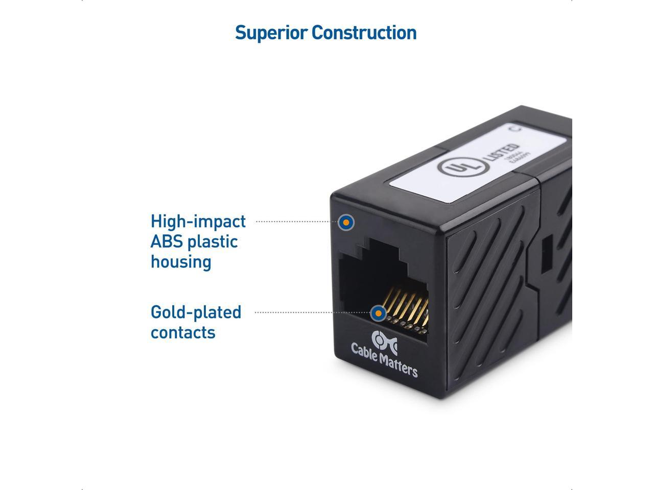 Cable Matters [UL Listed] 10-Pack 10Gbps Cat 6 Ethernet Coupler (RJ45 Coupler, Cat6 RJ45 Female to Female Adapter, Ethernet Extender Adapter) in Black, Compatible with Cat6A, Cat5e