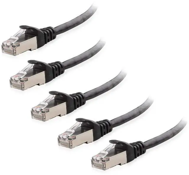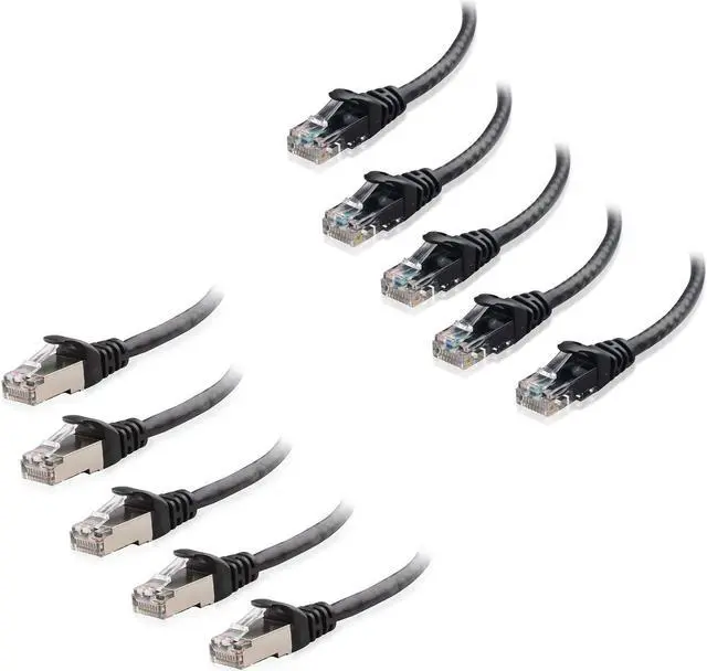 Cable Matters 5-Pack Snagless Short Cat6 Ethernet Cable (Cat6 Cable, Cat 6 Cable) in Black 3 ft & 5-Pack Snagless Short Cat6A (SSTP, SFTP) Shielded Ethernet Cable