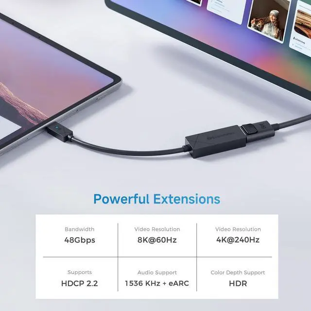 Ultra High-Resolution Support: Achieve stunning visuals with support for resolutions up to 3840x2160@240Hz and 7680x4320@60Hz. This adapter is backward compatible with 4K and 1080p, making it ideal for a range of high-definition setups.