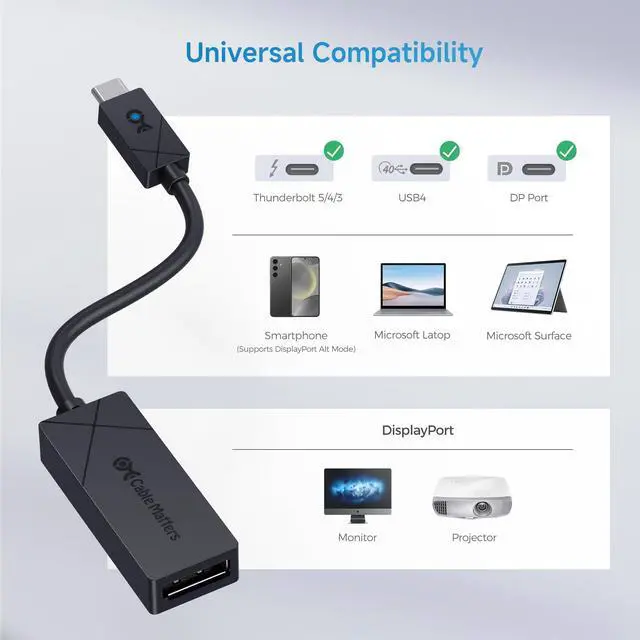 Cable Matters [Designed for Microsoft Surface] USB C to DisplayPort 1.4 Adapter, Supports 4K@240hz, 8K@60hz, HDR, Compatible with Surface Pro, Surface Laptop, Surface Book with USB-C or Thunderbolt 4