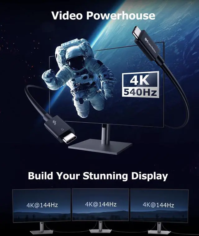 Universal Compatibility: Designed for versatility, this Thunderbolt 5 cable seamlessly connects with a wide range of devices, including all Thunderbolt 3, Thunderbolt 4, USB4, and USB-C equipment. Whether you are connecting to the latest laptops, docking stations, or high-resolution displays, this cable ensures you can build a flexible and efficient workspace with