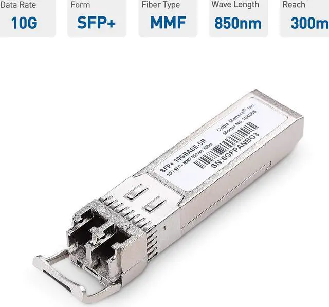 Cable Matters 2-Pack 10GBASE-SR SFP+ to LC Multi Mode 10G Fiber Transceiver Modular for Cisco, Ubiquiti, TP-Link, Huawei, Mikrotik, Netgear, and Supermicro Equipment