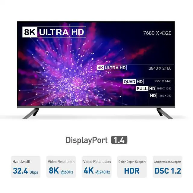 5 in 1 function USB Type C adapter provides all the functions to work on the road when traveling; Connect a wireless mouse or keyboard with this DP to USB C adapter hub; DisplayPort USBC hub supports stable connection to an Ethernet network; USB C Dongle with DisplayPort transfer files to a flash drive; Expand your workspace to a UHD display with High Dynamic Range (HDR) up to 8K 7680 x 4320 with this USB-C hub with DisplayPort