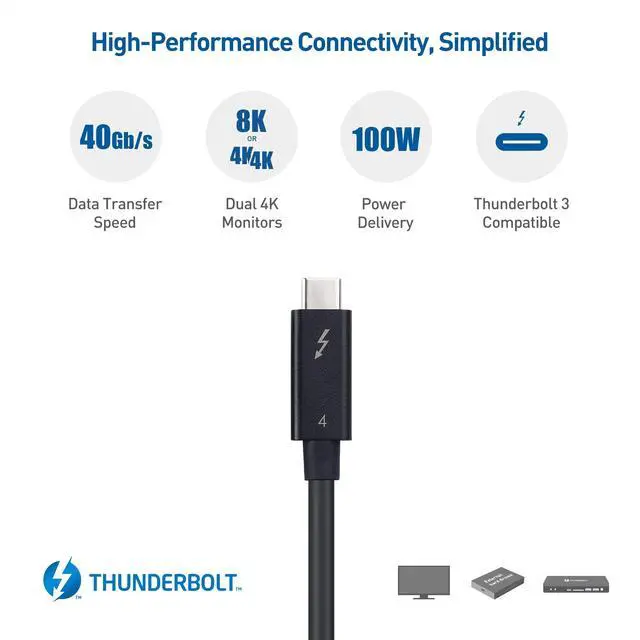 The Cable Matters Active Thunderbolt 4 cable features the newest Thunderbolt cable and USB 4 cable standards and is the longest active cable on the market that does it all; Take advantage of the new Thunderbolt 4 40Gbps connector with this long Thunderbolt 4 cable and USB4 cable