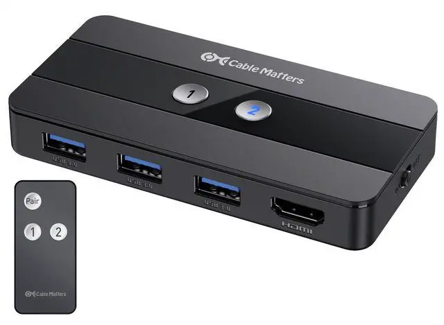 USB 3.0 KVM with HDMI For Two Hosts: Expand your workspace with the Cable Matters USB 3.0 KVM Switch HDMI; KVM Switch (USB KVM for Mac) 4 port shares up to 3 USB peripherals and 1 HDMI monitor with two computers; Space-saving HDMI KVM switch controls multiple computers from a single keyboard, mouse, and monitor