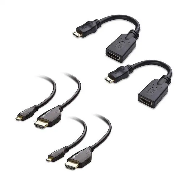 Connect mini and micro HDMI devices with the Cable Matters HDMI bundle, which includes a 2-pack of Mini HDMI to HDMI adapters, and a 2-pack of Micro HDMI to HDMI cables