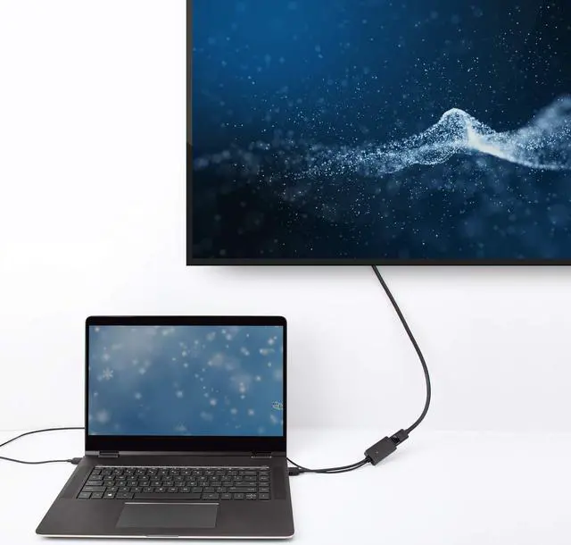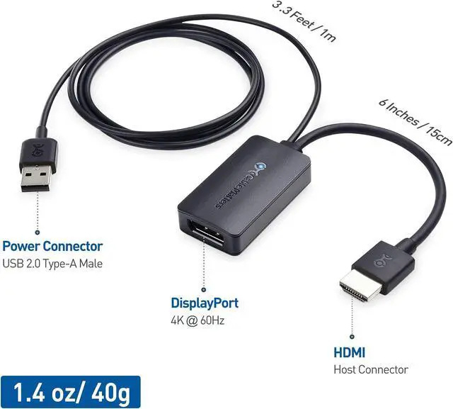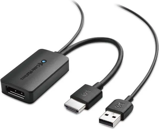 HDMI to DisplayPort cable adapter connects a computer or laptop with HDMI to a monitor with DisplayPort input; A DisplayPort cable (sold separately) is required for this HDMI male to DisplayPort female adapter