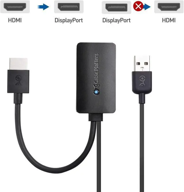 Cable Matters Uni-Directional HDMI to DisplayPort Adapter for Desktop and Laptop Computers (HDMI 2.0 to DisplayPort 1.2) with 4K 60Hz Video Resolution - Not Compatible with PS5 or Xbox Series X/S