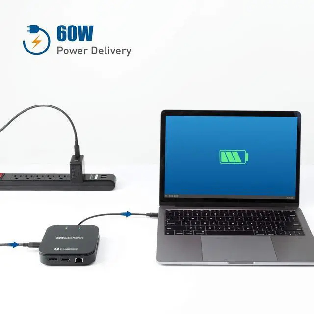 Pass-through Power Delivery supports charging the host device with up to 60W charging; Power and charge your device over one cable with this Thunderbolt 3