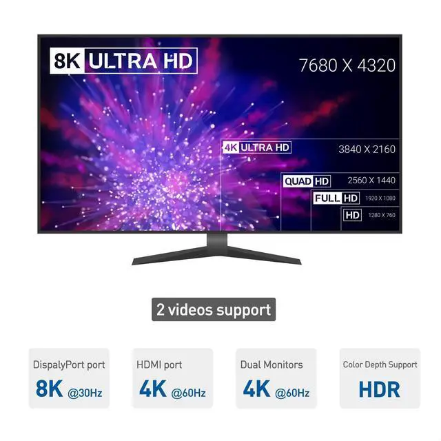 Works as a USB4 hub and supports dual video with 1 HDMI and 1 DisplayPort port; Connect up to 2 displays to the Thunderbolt dock; Maximum resolution support of the Thunderbolt 3 adapter is an 8K DisplayPort 1.4 monitor or a 4K HDMI monitor; Built-in TRRS headphone jack supports headphones or a single-cable headset for audio on the Thunderbolt hub