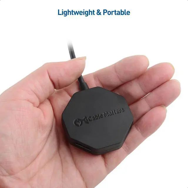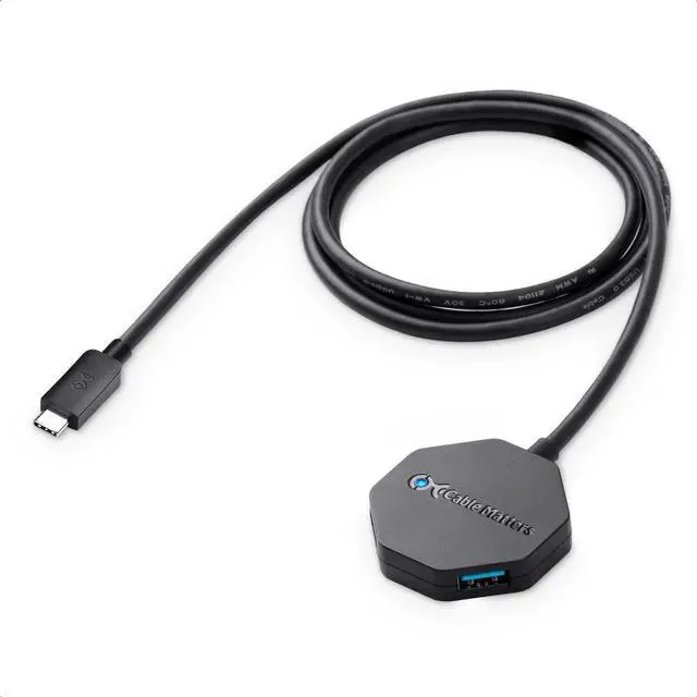 USB Type-C port expander - add 4 additional USB ports to a computer with a USB Type C port; Connect a flash drive to transfer files or plug in a wireless mouse dongle instead of using a touchpad; USB 3.0 rated devices will operate at the SuperSpeed 5 Gbps data transfer rate for fast file transfers ^^ Extra long 4ft / 1.2 m cable tail provides a long and durable connection; Set up the long USB-C hub with USB-C extension cable for easy access to peripherals at a distance ^^ Ultra-Mini USB C to USB hub weighs features an octagonal design that provides roomy access to all four ports simultaneously ^^ Essential legacy USB companion - continue to use all your USB 3.0 and 2.0 peripherals and storage drives with computers with Type C USB ports; USB C Hub Long Cable with USB-A portsis backwards compatible with USB 3.0, 2.0, and 1.