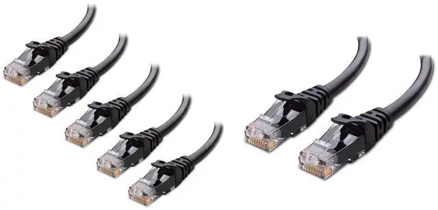Cable Matters 1-Pack 10Gbps Snagless Cat 6 Ethernet Cable 3 ft (Cat 6 Cable) in Black & 10Gbps 5-Pack Snagless Short Cat 6 Ethernet Cable 3 ft in Black