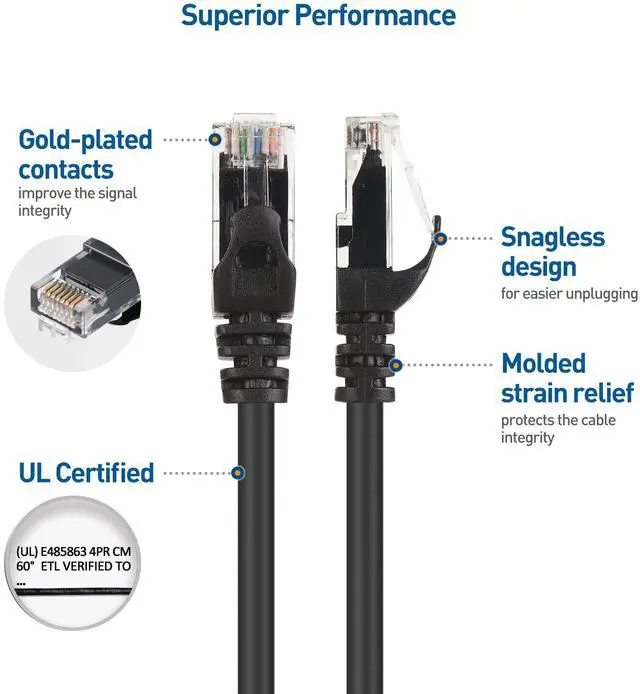 High Performance Internet cable is Cat6 rated; The Ethernet cord with 24 AWG copper wire provides universal connectivity for LAN network components such as PCs, computer servers, printers, routers, switch boxes, network media players, NAS, VoIP phones, PoE devices, and more