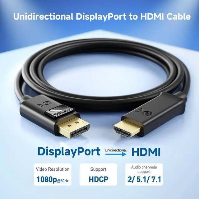 Resolution Support: The HDMI to DisplayPort adapter cable (HDMI to DP adapter cable) supports resolutions up to 1080p Full HD and flawless audio pass-through for uncompressed digital 7.1, 5.1, or 2-channel sound. Ideal for connecting DP-equipped laptops or desktops to HDMI monitors or TVs. ^^ Durable Build for