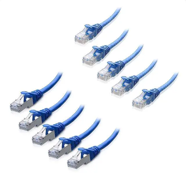 Cable Matters 5-Pack Snagless Short Cat6 Ethernet Cable (Cat6 Cable, Cat 6 Cable) in Blue 7 ft & Cat6A (SSTP, SFTP) Shielded Ethernet Cable