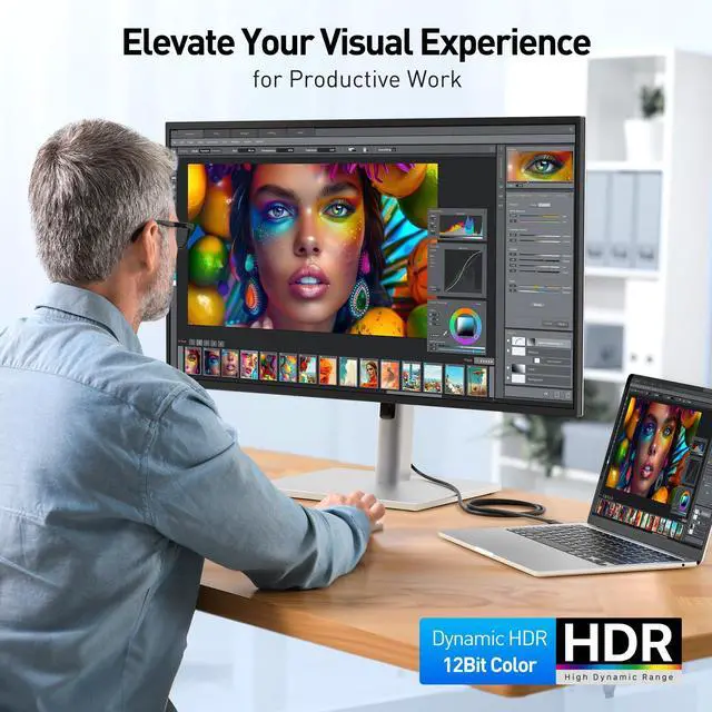 USBC to HDMI cable directly connects a computer to a UHD TV, monitor or projector; USB C HDMI cable requires DisplayPort Alternate Mode support to view video over USB-C. Newly released Windows computers may require BIOS Thunderbolt 3 firmware, Thunderbolt 3 driver, and Intel Graphics driver update from the computer manufacturer to work properly with this HDMI to USBC adapter cable. ^^ 4K@60Hz resolution support with this HDMI to USB C cable; USB Type C to HDMI adapter cable supports HDMI 2.0 up to 3840x2160 @ 60Hz. HDMI to USB-C adapter cable is backwards compatibility with HD 1080p and 720p; USBC to HDMI adapter cable supports High Definition Audio for a full range of audio types, including SACD, DVD-Audio, DTS-HD Master Audio, and Dolby TrueHD.
